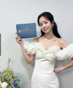 同年11月29日には、第45回青龍映画賞の司会を俳優イ・ジェフンさんと共に務め、ホワイトのオフショルダードレスで登場、その洗練されたルックスとエレガントな佇まいで会場を魅了しました。